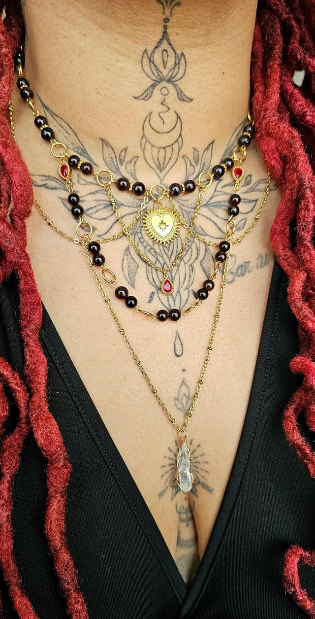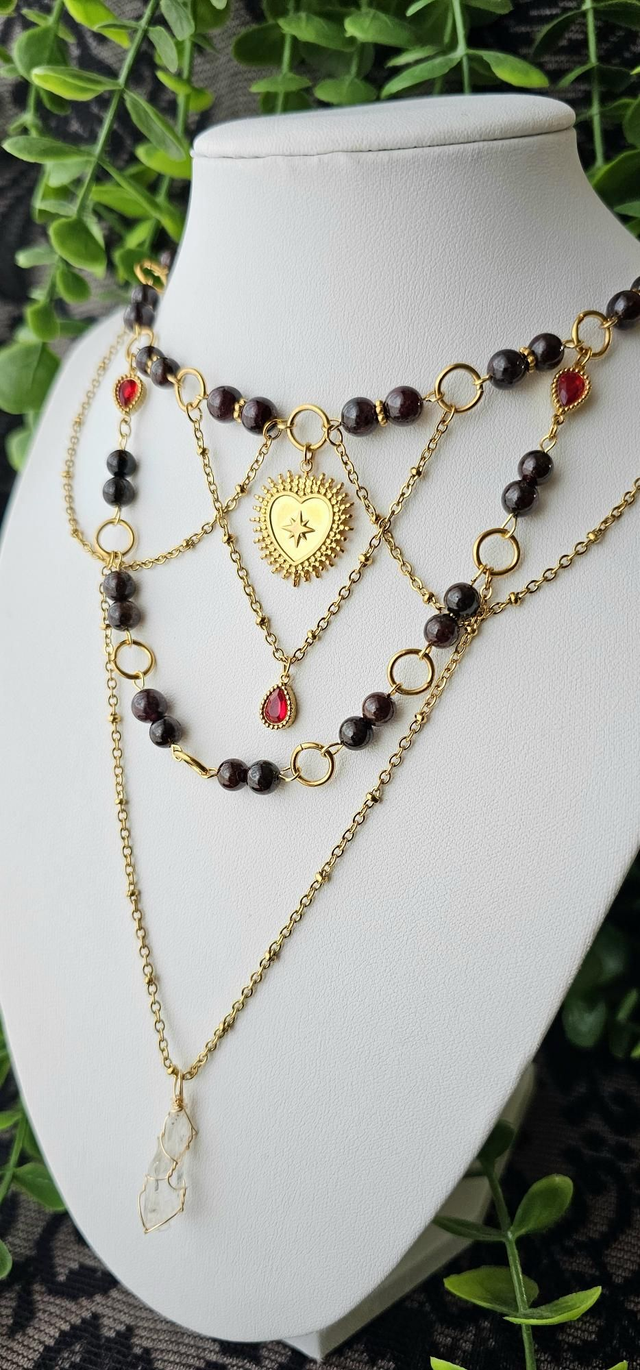 Grenat stimule l'énergie vitale, favorise la stabilité émotionnelle et accroître la confiance en soi. Cette pierre est associée à la créativité et à la passion, stimulant le désir de vivre pleinement.