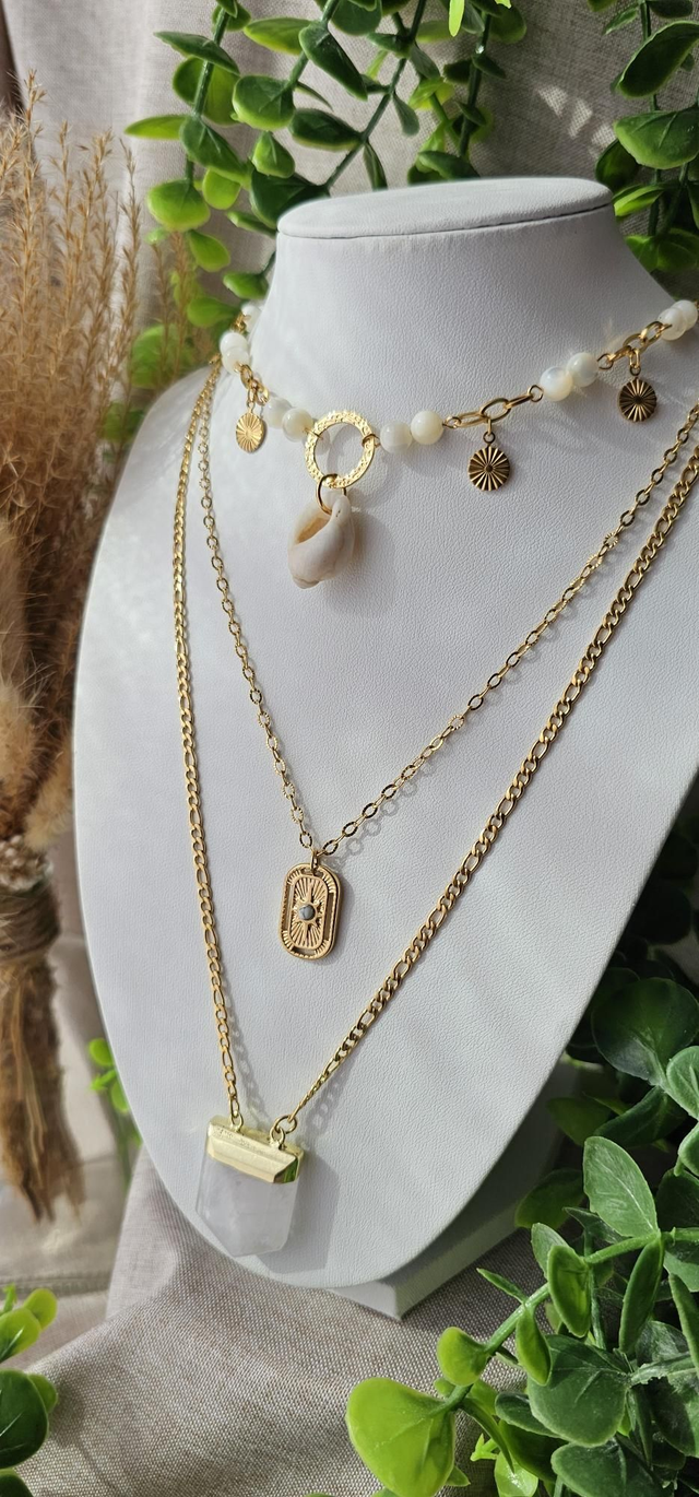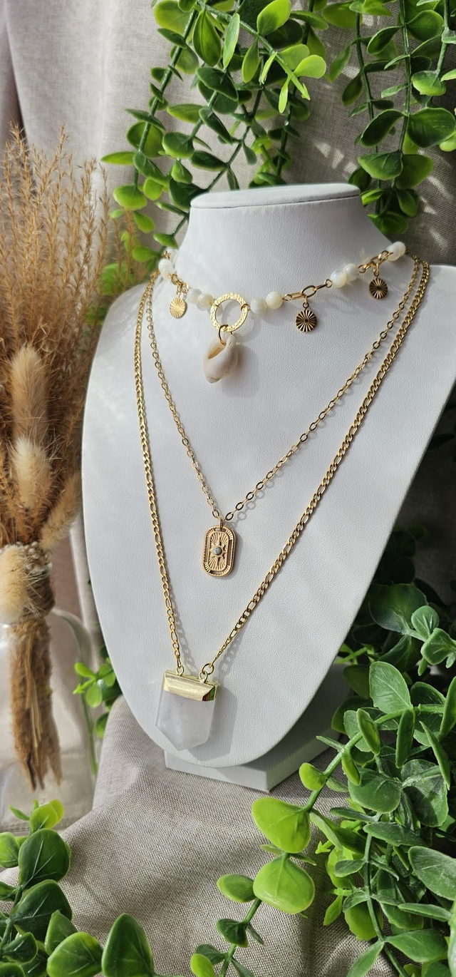 Nacre et cristal de roche pierre d'intuition et d'ouverture d'esprit : elle stimule l'imagination et la créativité.